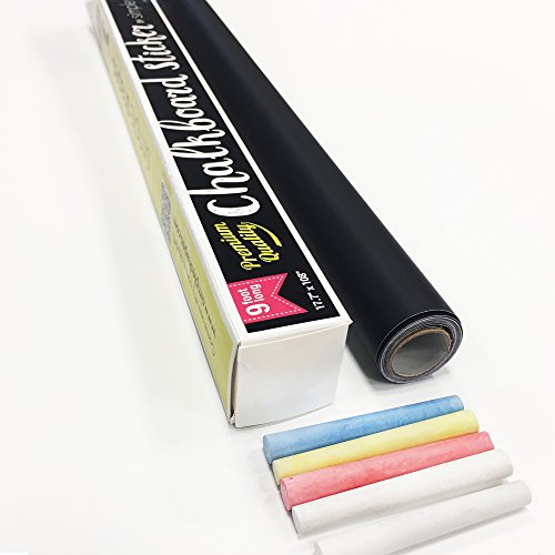 Chalkboard Contact Paper 9 foot roll (108 inches) + (5) Color Chalk Included - by Simple Shapes