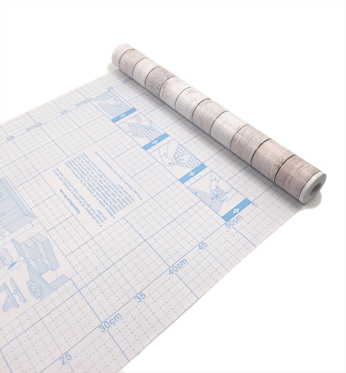大容量サイズ:約45cm×10m ビニール製で防水加工を施してあるので表面はツルツルです! 壁紙裏面は1cm方眼になっているので切り分けに便利です。