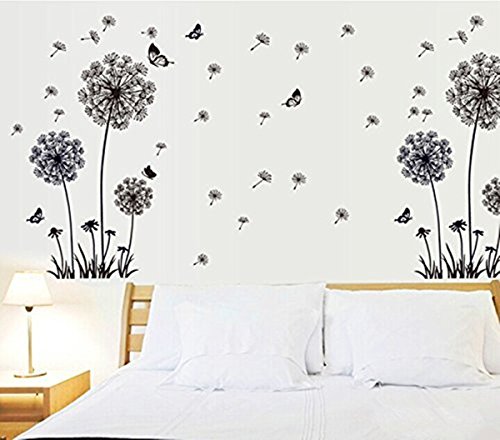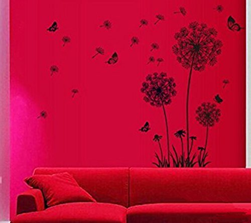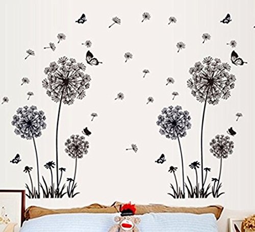 3cworld Dandelion and Butterflies Self-adhesive Wall Decals Stickers for DIY Mural Art Merry Christmas Gift (Dandelion-black)