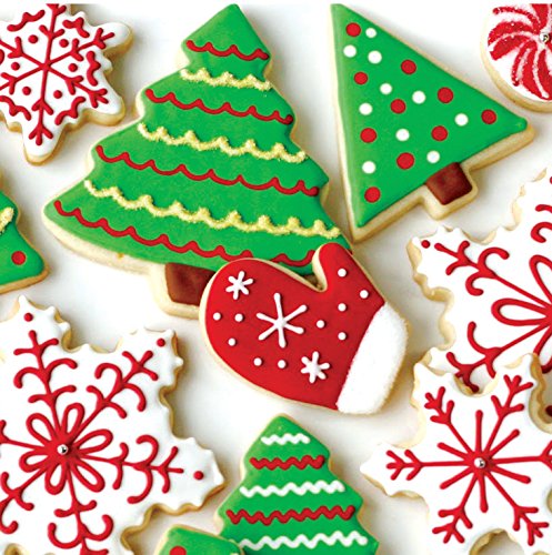 - Tasty holiday cookies decorated with red, green, and white icing