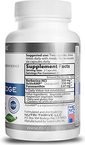 FUCOXANTHIN THERMOGENESIS- Fucoxanthin is a seaweed extract that gradually deposits into white fat tissue and pigments it, enabling thermogenesis. After about 2 months of sustained use, the fat tissue can have enough pigment to be considered "beige," or "brown" fat, that is more readily accessed for heat and energy.* ActivAMP AMPK- The ingredient ActivAMP is a specialized, heat-processed extract of Jiaogulan (gynostemma pentaphyllum). It has been shown clinically in humans to have an average loss of abdominal fat of 20.9 cm² at 3 months. It primarily does this due to the bodily process called AMPK. AMPK is considered a master metabolic switch. This gets activated during exercise and fasting and effects the body on a cellular level.* BERBERINE- Berberine also potently activates AMPK, as well as aiding in the management of healthy insulin, leptin, and cholesterol.* WARNINGS RETURNS- Berberine increases beneficial gut micorbiota while decreasing harmful, pathogenic gut bacteria and parasites. This changes how you normally digest food. During the first month or so of this transition, a small percentage of people experience abdominal side effects, which can include bloating, gas, constipation, or diarrhea. If you experience any of these side effects and wish to discontinue use and return your bottle, just message us with your order number. We absolutely accept returns and want our customers to be happy. 0 |