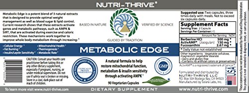 Metabolic Edge is a potent blend of 3 natural extracts that is designed to provide optimal weight management as well as blood sugar and lipid control. Current research shows that these extracts activate AMPK and SIRT, that are activated during exercise and caloric restriction. These mechanisms work together to improve whole body metabolism through increasing: - Mitochondrial Health