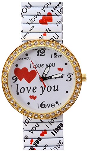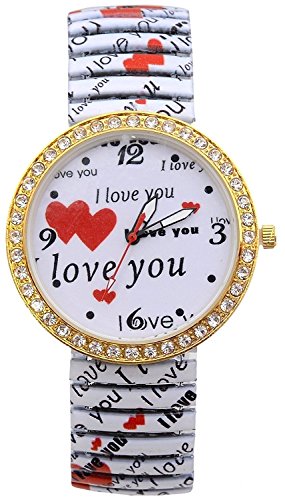 I Love You Stretchable Analog Wrist Watch for Woman, Girls