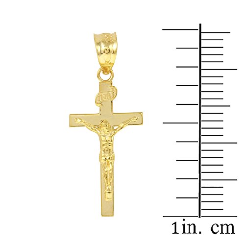 -. Binding : Jewelry -. Brand : Gold Crucifixes -. Department : womens -. Feature : handmade religious crucifix pendant necklace charm depiction of Jesus Christ on the holy cross / faithfully handcrafted with authentic 10 karat yellow gold in fine polished finish / comes with free special gift packaging / made in the USA yet offered at factory direct jewelry P.R.Ice / ships from the manufacturer directly to the customers -. Label : Claddagh Gold -. Manufacturer : Claddagh Gold -. Model : CM1697 -. MPN : CM1697 -. PartNumber : CM1697 -. ProductGroup : Jewelry -. ProductTypeName : FASHIONNECKLACEBRACELETANKLET -. Publisher : Claddagh Gold -. Studio : Claddagh Gold -. Title : Solid 10k Gold Cross INRI Crucifix Pendant Necklace (1.18")