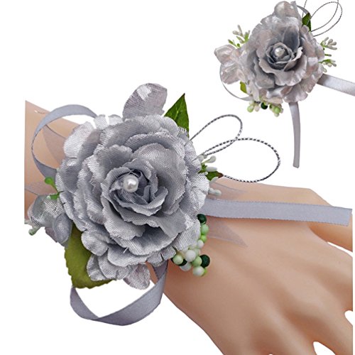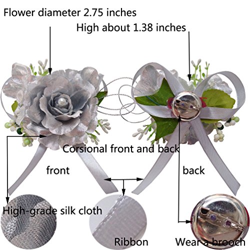 Steen Wedding Bride Bridesmaid Silver Simulation Roses Pearl Corsage And Boutonniere Set of 2