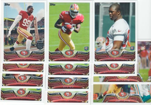 - San Francisco 49ers 2013 Topps complete regular issue 18 card team set including Colin Kaepernick, Frank Gore, Justin Smith, Eric Reid, Michael Crabtree, Vernon Davis, Anquan Boldin, Cornellius Carradine, Mario Manningham, Mike Iupati, Patrick Willis, Andy lee, Navorro Bowman, Vance McDonald, Marcus Lattimore, Aldon Smith, Quinton Patton and 49ers Team Leaders card.