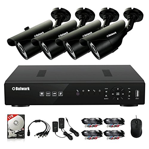 BULWARK 8-Channel 1080P Lite DVR Recorder CCTV Security System with 4x Super HD 1MP Outdoor Cameras And 1TB HDD (1280x720p Bullet Cam, Rapid USB Storage Backup, Vandal and Water-Proof Body)