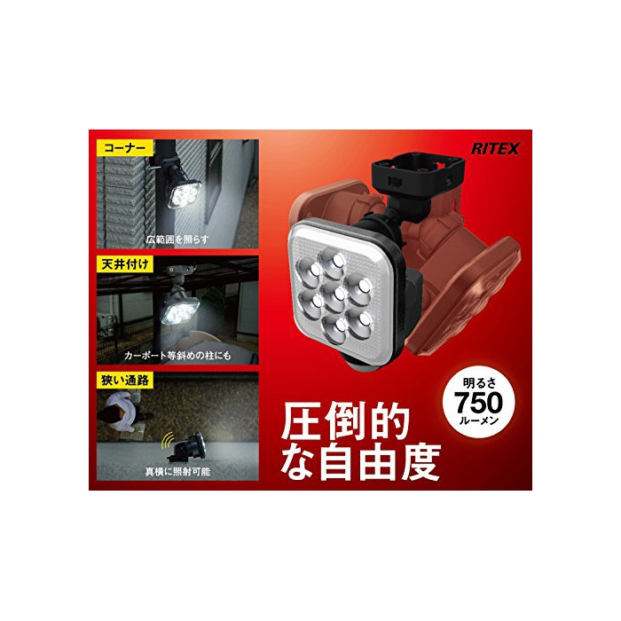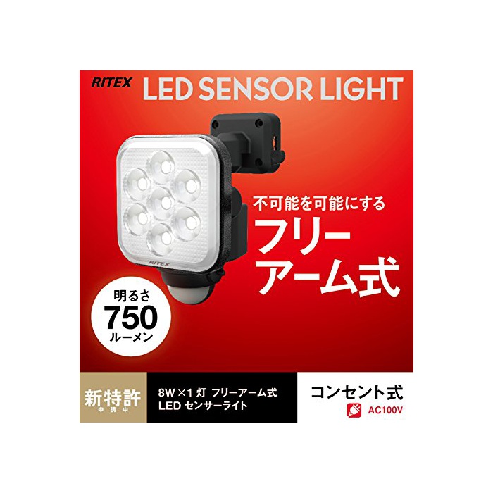 원본상품명: ムサシ RITEX フリアム式LEDセンサライト(8W×1) 「コンセント式」 防雨型 LED-AC1008