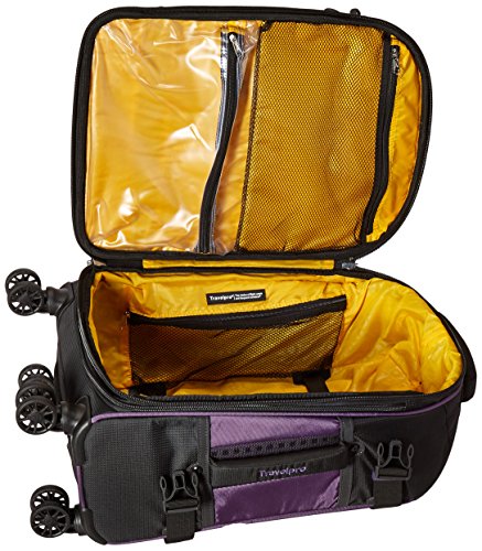 -. Feature : Dual spinner wheel system- our 8-wheel spinners make it easier than ever to maneuver through crowded airports and airplane aisles / High-density polyester fabric with water-repellent coating for greater stain and abrasion resistance. Hidden back pocket ideal for quick access to change, keys, electronic cables, phone and more. Expansion designed to enhance stability roomy main compartment has tapered expansion of up to 2 inch on select models, maximizing packing flexibility while keeping the center of gravity low / Aircraft-grade aluminum handle system / Interior mesh pocket built onto lid. Large zippered wet pocket ideal for toiletries and wet clothing. Adjustable hold-down straps, with anti-break duraflex buckles specially designed to close confidently and reduce breakage / 21x14x9