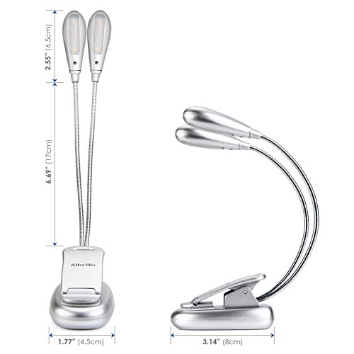 - 【Bendable arm & Clip】 2 flexible arms can be 360°adjustable to cover 2 pages of book and with clip on light which is good for book, table, desk, bookshelf, cabinet,etc