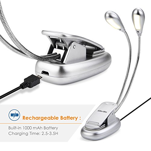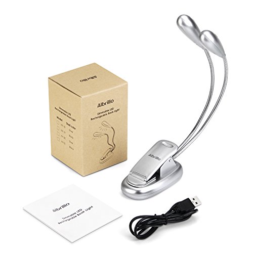 Albrillo Book Light Rechargeable USB, Clip on Reading Lights, Dimmable Warm White, 8 LED