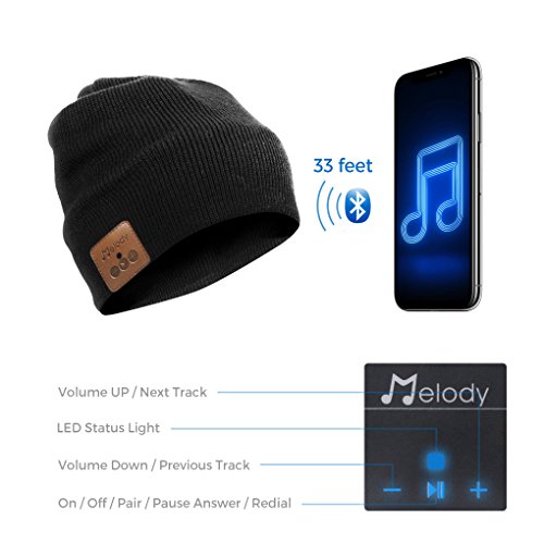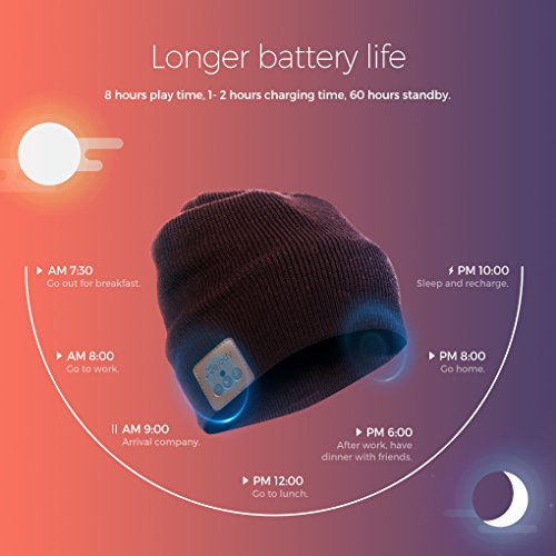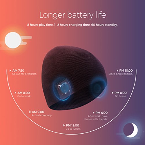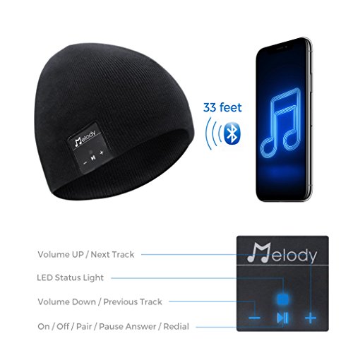 -. Feature : ✅EASY TO CONNECT BLUETOOTH DEVICE-The Wireless Bluetooth beanie is easy and fast to pair with smart phones, tablets, laptops and other wireless Bluetooth devices in seconds, listen to music and decline/answer calls anywhere, wireless range up to 33 feet (10 meters). / ✅LOUD & HD STEREO MUSIC EXPERIENCE-The Bluetooth beanie adopts advanced noise reduction technique and the superior stereo loudspeaker with advanced digital sound, balanced super bass, dynamic mid-range & crystal clear high notes ensure you amazing enhanced music listening experiences while keeping warm. No worries about dangling wires or ear buds falling out of your ears when doing sports. / ✅LONGER BATTERY LIFE - Up to 8 hours play time,1- 2 hours charging time,60 hours standby. Easy to recharge by USB. / ✅USER-SIMPLE OPERATING BUTTONS- The knit Bluetooth beanie hat with built-in stereo speaker and microphone on the left earpiece allows you to skip back and forth, answer and hang up calls without touching the phone. The speakers are easy to take out for washing. / ✅100% RISK-FREE PURCHASE- confident in product quality and service. The Bluetooth hat of BCELIFE comes with a 30-day money-back guarantee and 12-month product warranty withfriendly customer service.