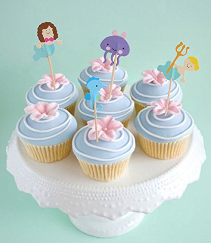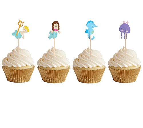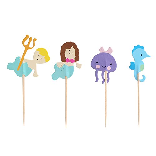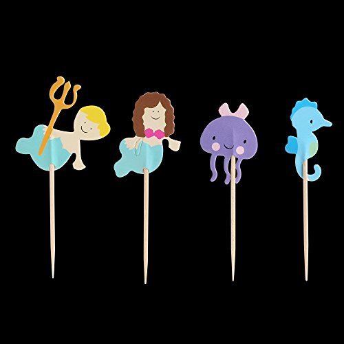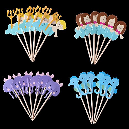 BABEYOND Zoo Animal Mermaid Pirate Cupcake Topper Picks with Stickers Appetizer Decorations For Birthday Baby Shower Party Favors 24 Pack (Sea horse)