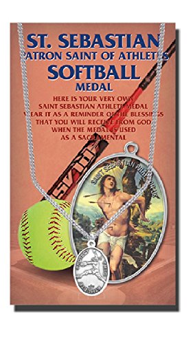 -. Title : St Sebastian Softball Medal with 18 Inch Chain Oval Pewter Womens