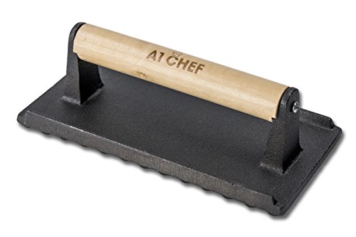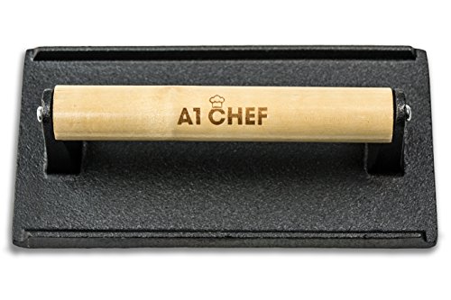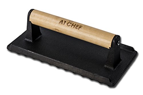 - RUGGEDLY BUILT TO LAST – A1 Chef cast iron grill press is made of extra durable cast iron construction. It is made under state of the art facility following strict quality control. It will stand the test of time even with the roughest use. It will leave an attractive grill mark on any meat that will leave the eater begging for more!