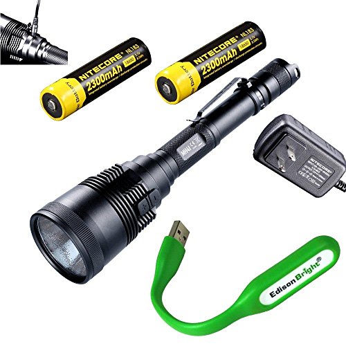 Nitecore MH41 2150 lumen CREE LED rechargeable flashlight/ searchlight, 2X Nitecore rechargeable 18650 batteries with EdisonBright USB powered reading light