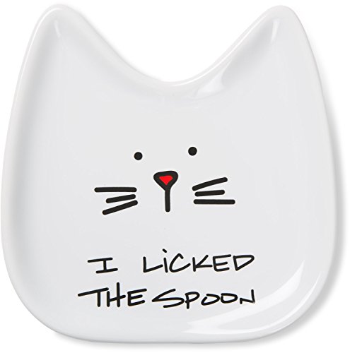 Pavilion Gift Company Blobby Cat, Cat Spoon Rest "I Licked the Spoon", 5", White
