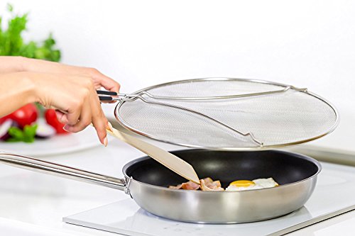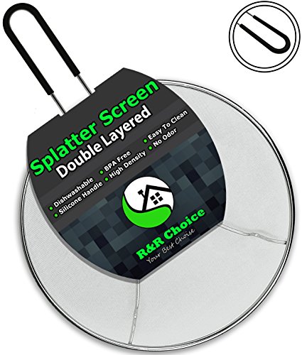 Splatter Screen 13” - Double Layered Fine Mesh Splash Guard, Silicone Stay-Cool Handle - Safe & Clean Cooking or Frying!