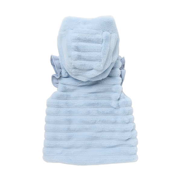 상품설명 예쁜 컬러감의 스카이 블루 컬러의 퍼 베스트 입니다. 가로셔링의 퍼로 도톰한 폴라폴리스 안감을 넣어주어 도톰한 두께감입니다. 후드가 달려있어 귀여우면서 캐주얼한 아이템입니다. 실내용으로 간편하게 입으시기 좋은 후드 아이템입니다.