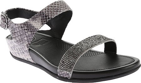 Product DescriptionDazzling microcrystal accents across the toe give the Banda Crystal IMI ? Snake Sandal from Fit Flop a shimmering style, while a leather-covered footbed provides durable cushioning.0