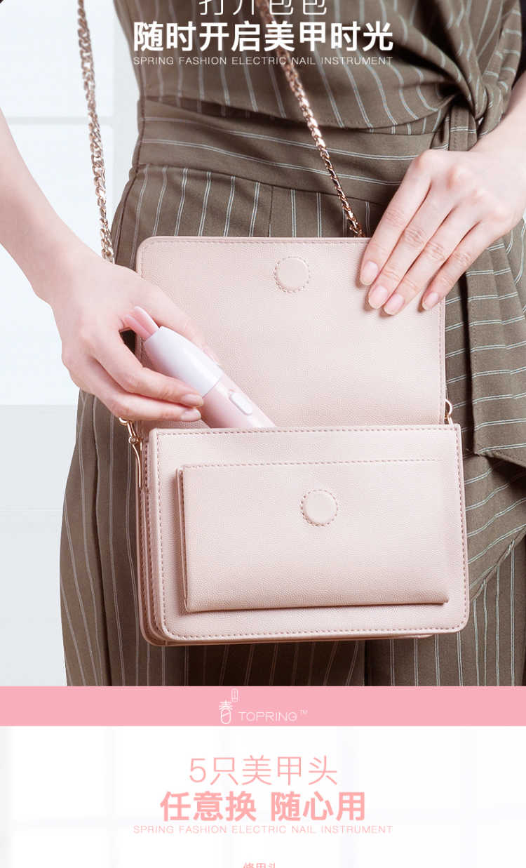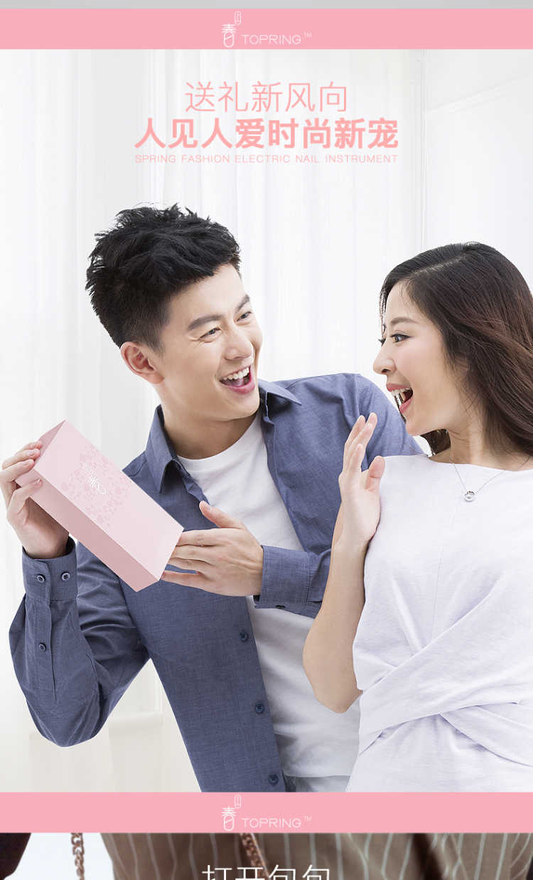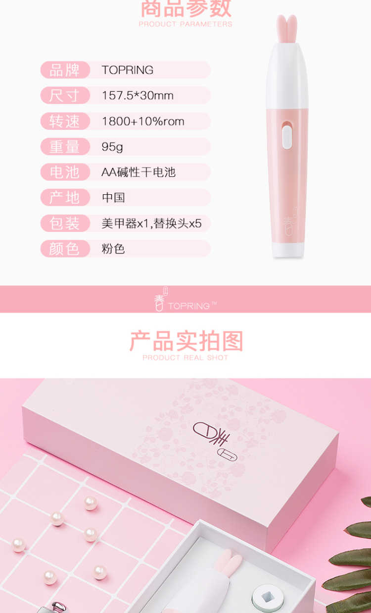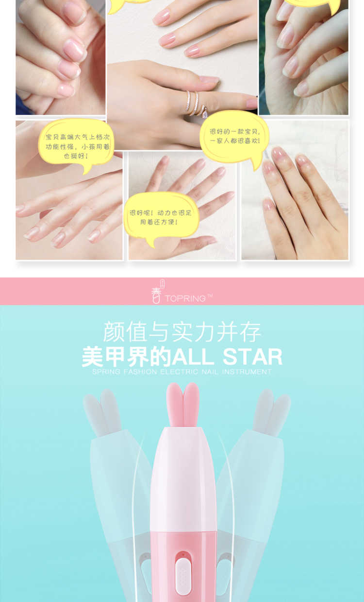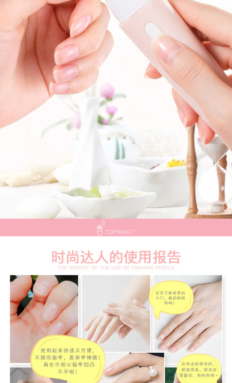 【买一得七】主机+磨砂打磨头+纳米粉头*2+抛光头*2+电池 春上电动美甲仪是一款新型美甲神器,通过打磨指甲表面使指甲如同做了美甲一样好看,纯物理打磨,对人体没有任何伤害,对指甲也没有任何磨损! 【功能介绍】 用春上美甲仪给指甲轻轻打磨抛光 几分钟就能让这指甲平滑光泽 就像拥有了一位私人美甲师 机器小巧玲珑携带方便,随时随地给你美甲,如同包包里的美甲店 操作简单易懂 跟涂甲油相比,美甲仪的操作简单的不能再简单了 【使用方法】: 第一步先使用磨砂打磨头给指甲修型, 第二步使用绿色打磨头打磨指甲表面, 第三步使用白色抛光头给指甲表面抛光! 非常简单!使用效果非常好!