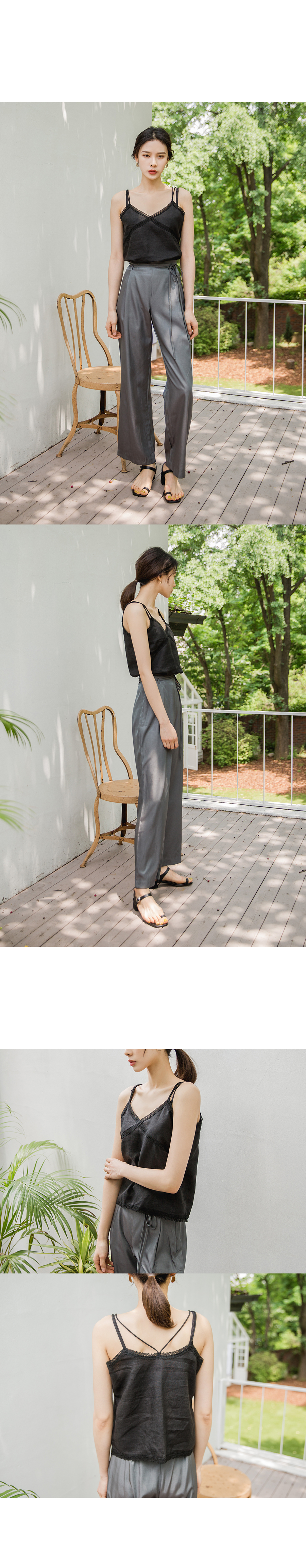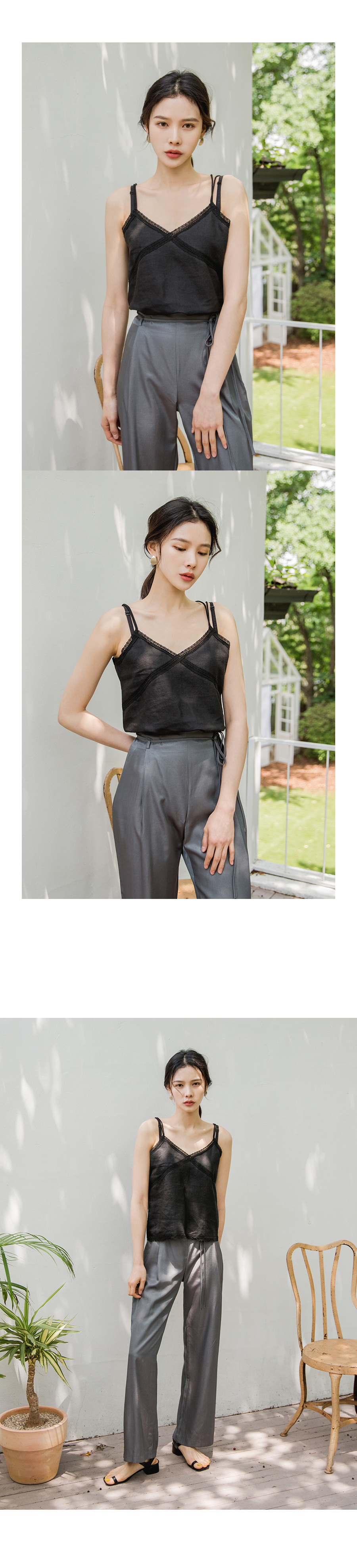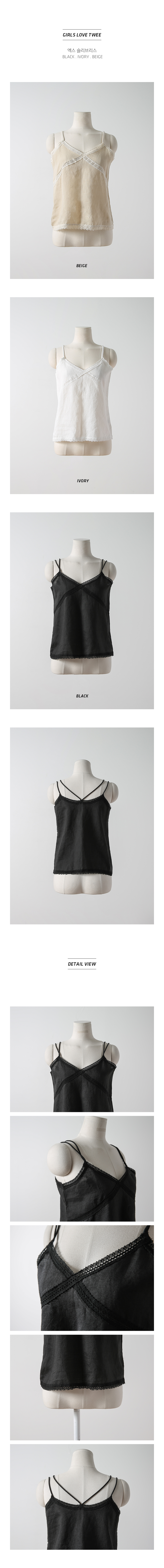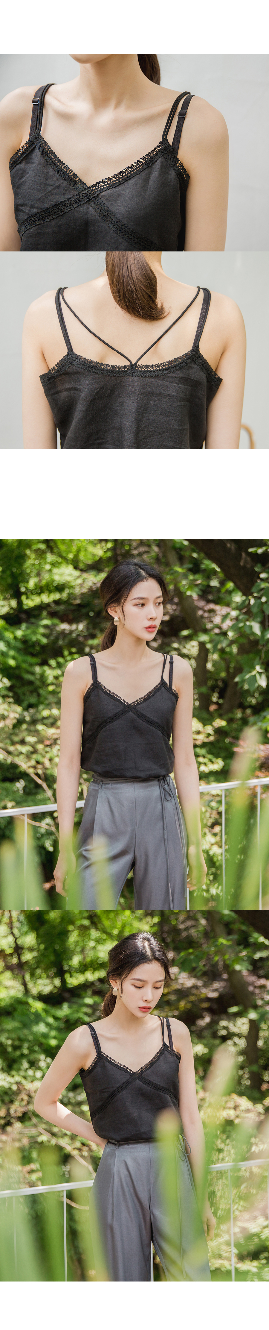 MD COMMENT이중 끈 엑스 자 디테일이 포인트인슬리브리스 입니다 여유 있는 핏 감으로 이너로 부담없이 즐기실 수 있구요 적당히 파인 v네크라인으로 쇄골라인을 돋보이게 해주어 여리여리하게 연출하실 수 있어요 밋밋하지않게 레이스 디테일로 여성스러운 무드로 팬츠,스커트와 함께 매칭해도 멋스러운 아이템이에요!