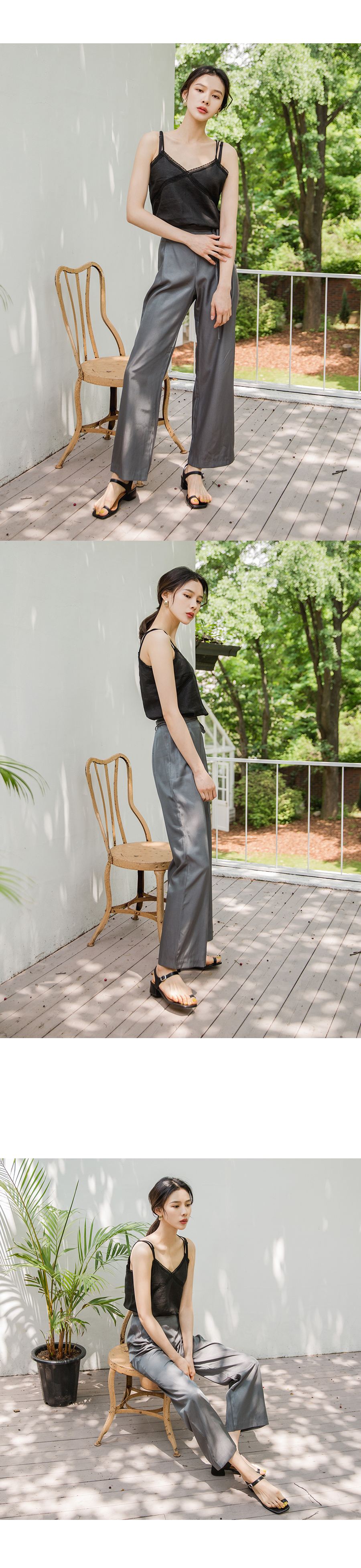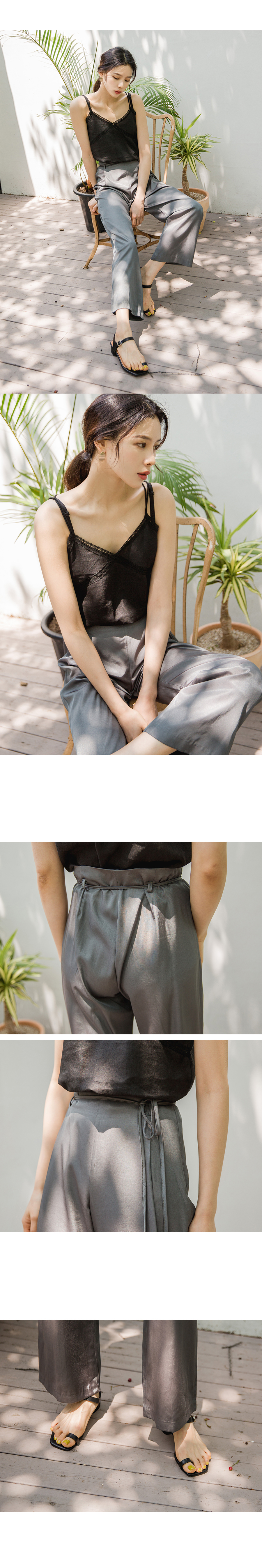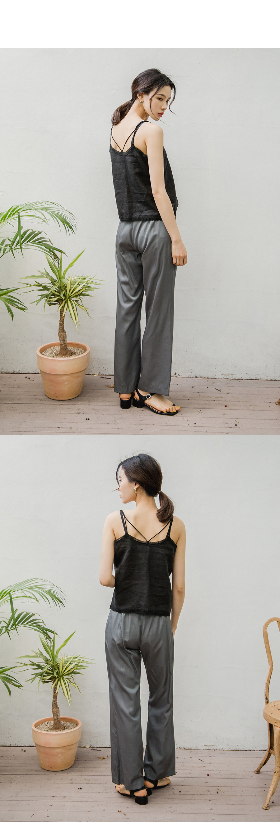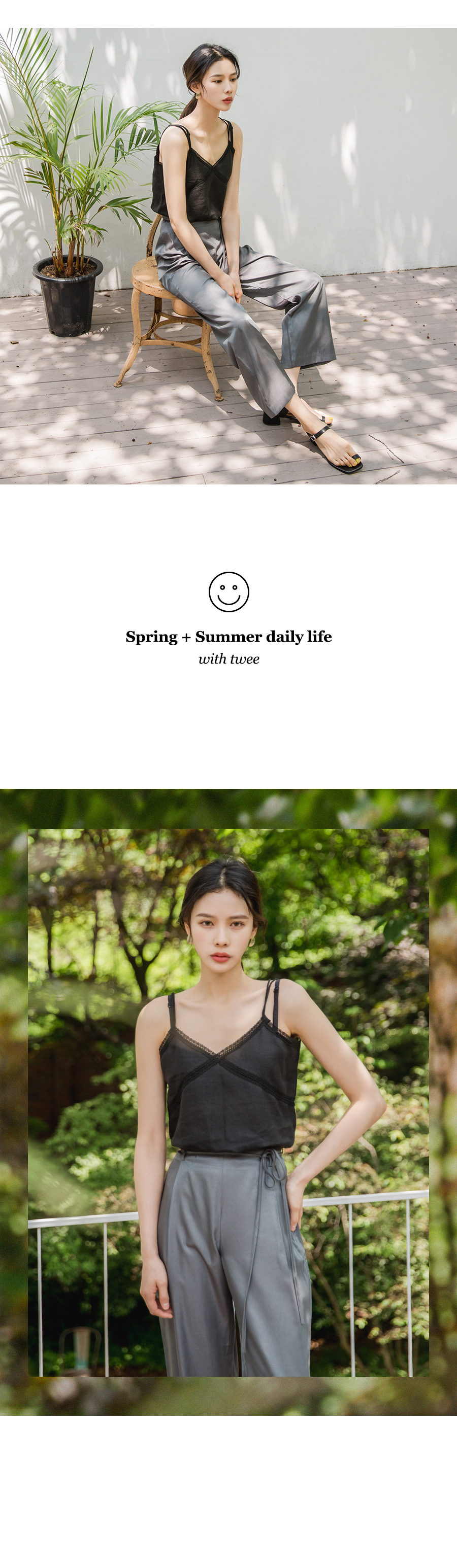 MD COMMENT이중 끈 엑스 자 디테일이 포인트인슬리브리스 입니다 여유 있는 핏 감으로 이너로 부담없이 즐기실 수 있구요 적당히 파인 v네크라인으로 쇄골라인을 돋보이게 해주어 여리여리하게 연출하실 수 있어요 밋밋하지않게 레이스 디테일로 여성스러운 무드로 팬츠,스커트와 함께 매칭해도 멋스러운 아이템이에요!