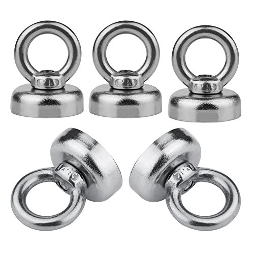 INHDBOX 5 Pack Salvage Magnet,22 Pounds Magnetic Hook , Round Base Magnet Fastener with Eyebolt,Steel NdFeB Magnetic Pot