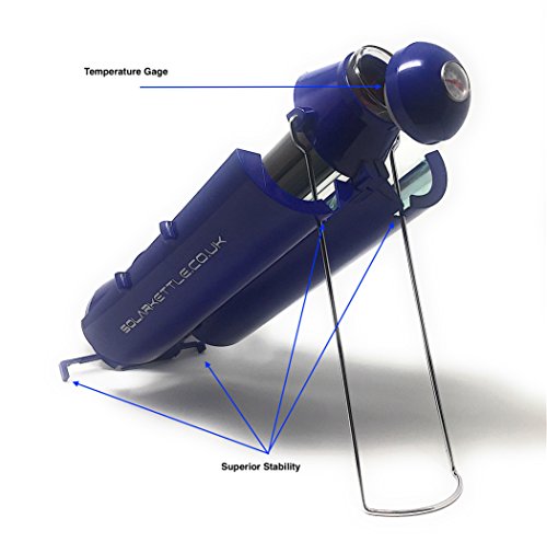 STURDY WITH TEMPERATURE GAUGE: Depending on the intensity ofthe sun rays and altitude, the kettle will reach boiling point of 200 F (93.4C) - 212 F (100 C) in less than 1 hour to 3 hours. It is designed to work inall seasons as long as the sun is up; it will also function in cloudy days orwith the snow around, capturing ultraviolet light and holding its heat.
