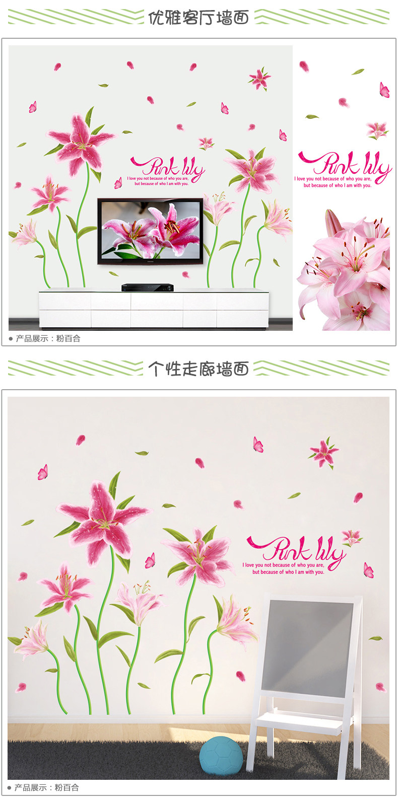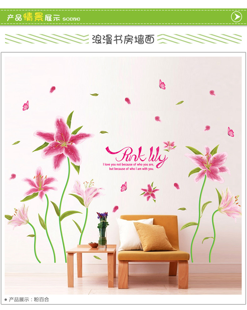 百合花墙贴客厅电视背景墙壁墙面卧室房间装饰品墙上贴画墙纸自粘