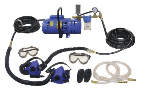 -. Feature : Includes: 3/4-HP Oil-Less Air Pump / 2-50-Foot Lightweight PVC Breathing Air Lines / 2-Halfmask Supplied-Air Respirator with Belt, Overspray Goggles