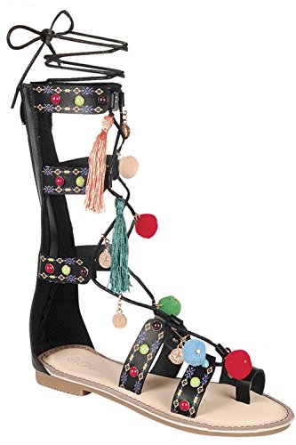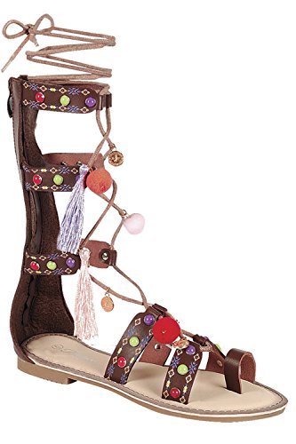 Product DescriptionThese sandals feature a faux leather material, lace up look, open toe, multi strap, gladiator inspired look, Great for that casual look.0