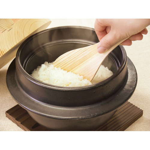 ●鍋(約φ18.5×12.5cm、容量:1.65L)・木蓋(φ21×厚さ3cm(持ち手含む7cm))・しゃもじ(21×7cm)・敷板(18×18×1.4cm)×各1