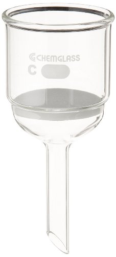 Chemglass CG-1402-18 Glass Buchner Filtering Funnel with Coarse Frit, 150mL Capacity, 60mm Disc Diameter, 50mm Depth, 15mm Outside Stem Diameter, 75mm Stem Length