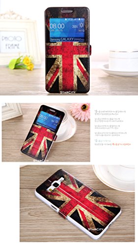 Galaxy Grand Prime Case, StarCity ® Samsung Galaxy Grand Prime Case [Smart Window View] [Stand Feature] - Premium Slim Flip View Cover Folio Case with Magnetic Closure for Samsung Galaxy Grand Prime G5308 G530H (Flip View Series_UK Flag)