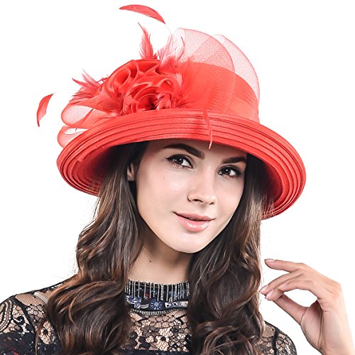 | Women Kentucky Derby Dress Church Wedding Party Feather Bucket Hat S608-A |