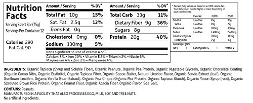 Garden of Life Organic Sport Protein Bar, Vegan, Peanut Butter Chocolate,12 Count