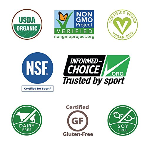 VEGAN PROTEIN BARS: Certified USDA Organic, Non-GMO Project Verified, NSF Certified for Sport, Informed-Choice for Sport Certified, Certified Vegan, Gluten Free, Dairy free, Soy Free