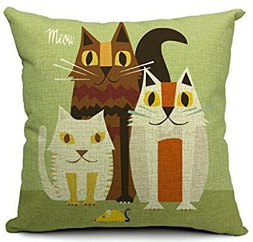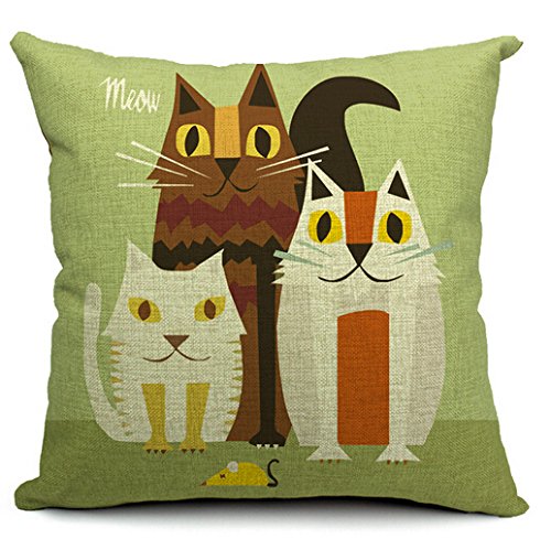 Animal the Family 3 Cats Cotton Linen Throw Pillow Case Cushion Cover Home Sofa Decorative 18 X 18 Inch ¡