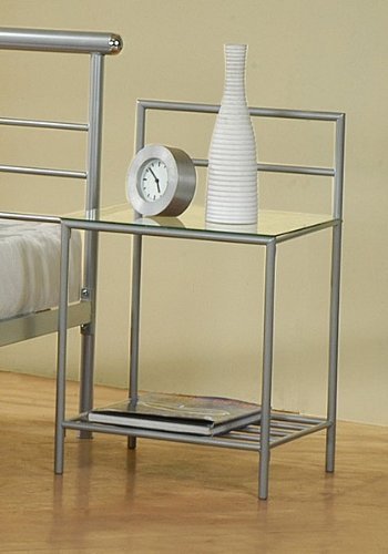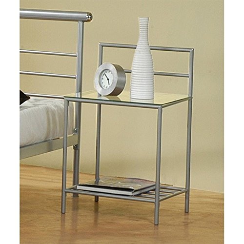 Studio : Coaster Home Furnishings Publisher : Coaster Home Furnishings Binding : Kitchen Product Description Contemporary Modern Silver Finish Metal Night Stand. This nightstand features the durability of metal with the elegance of glass. Convenient bedside storage of items you wish to keep near. Also features a bottom shelf for storage. Matching platform bed is sold separately. Item requires simple assembly. 0
