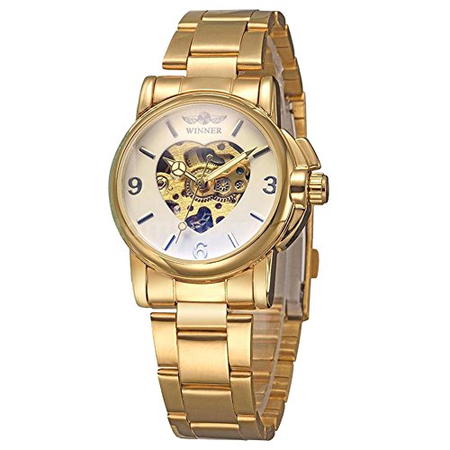 -. Title : Women's Hollowed-out Heart shape dial plate Wristwatch - WINNER Women's Skeleton Automatic Mechanical Alloy Analog Watch, Gold
