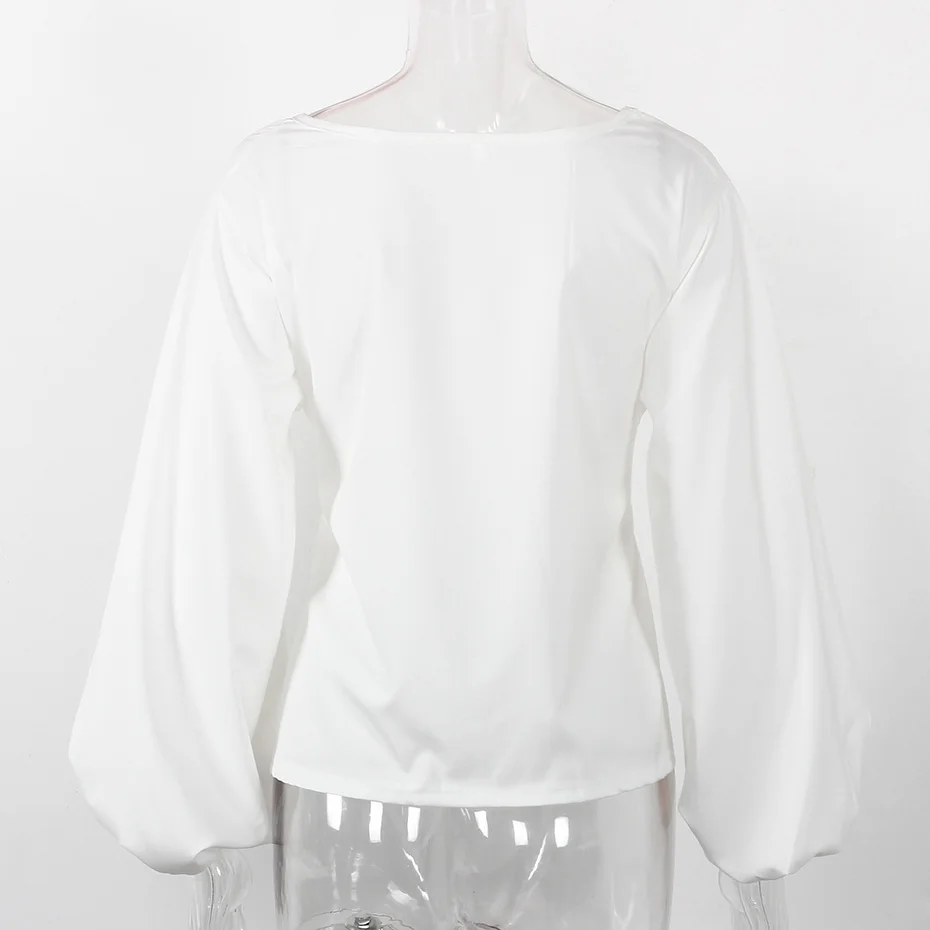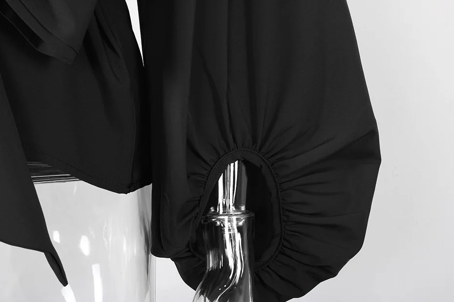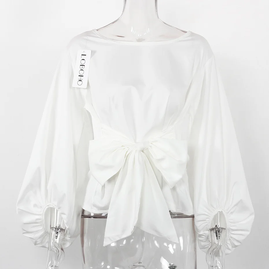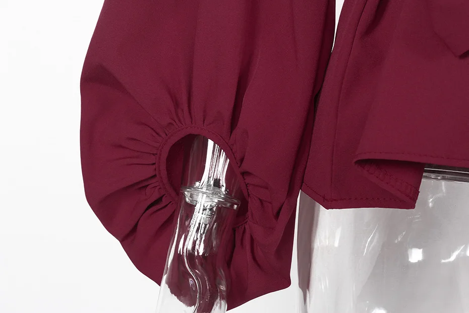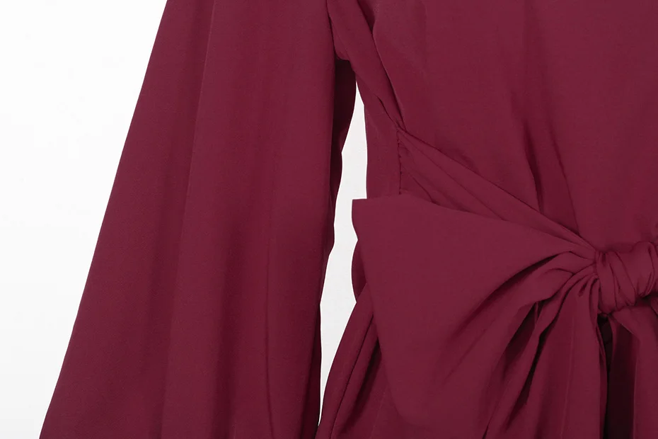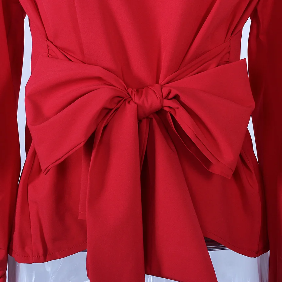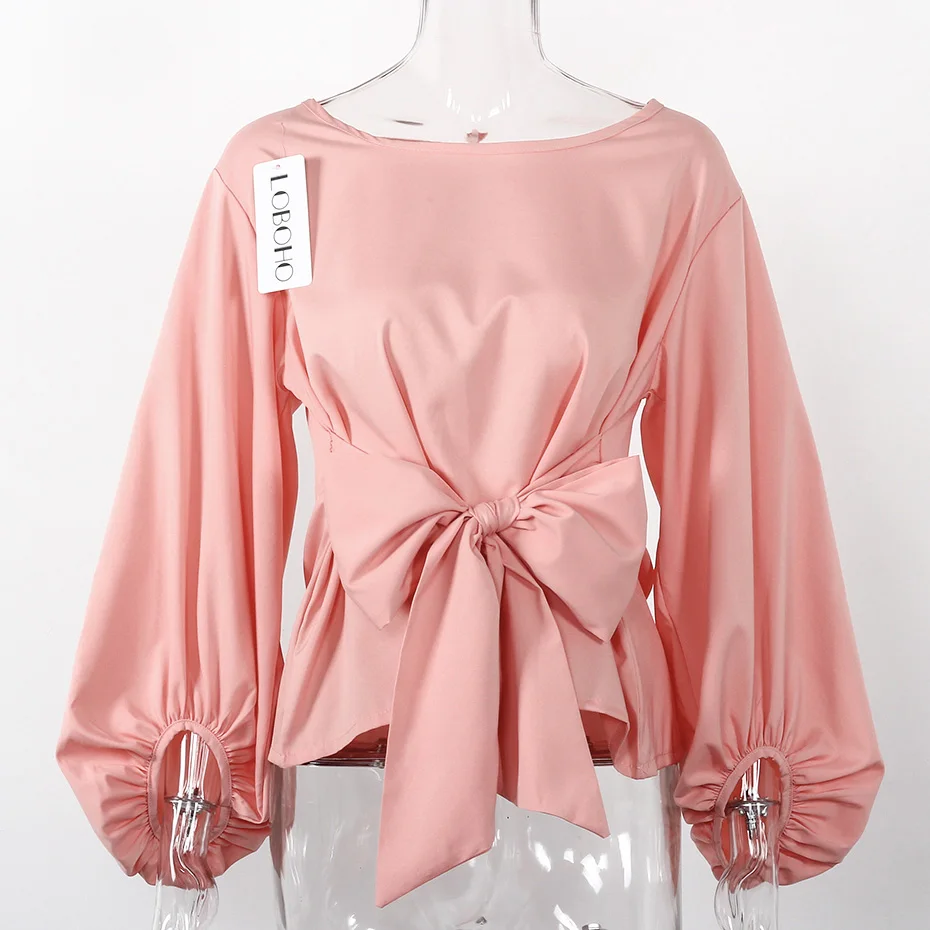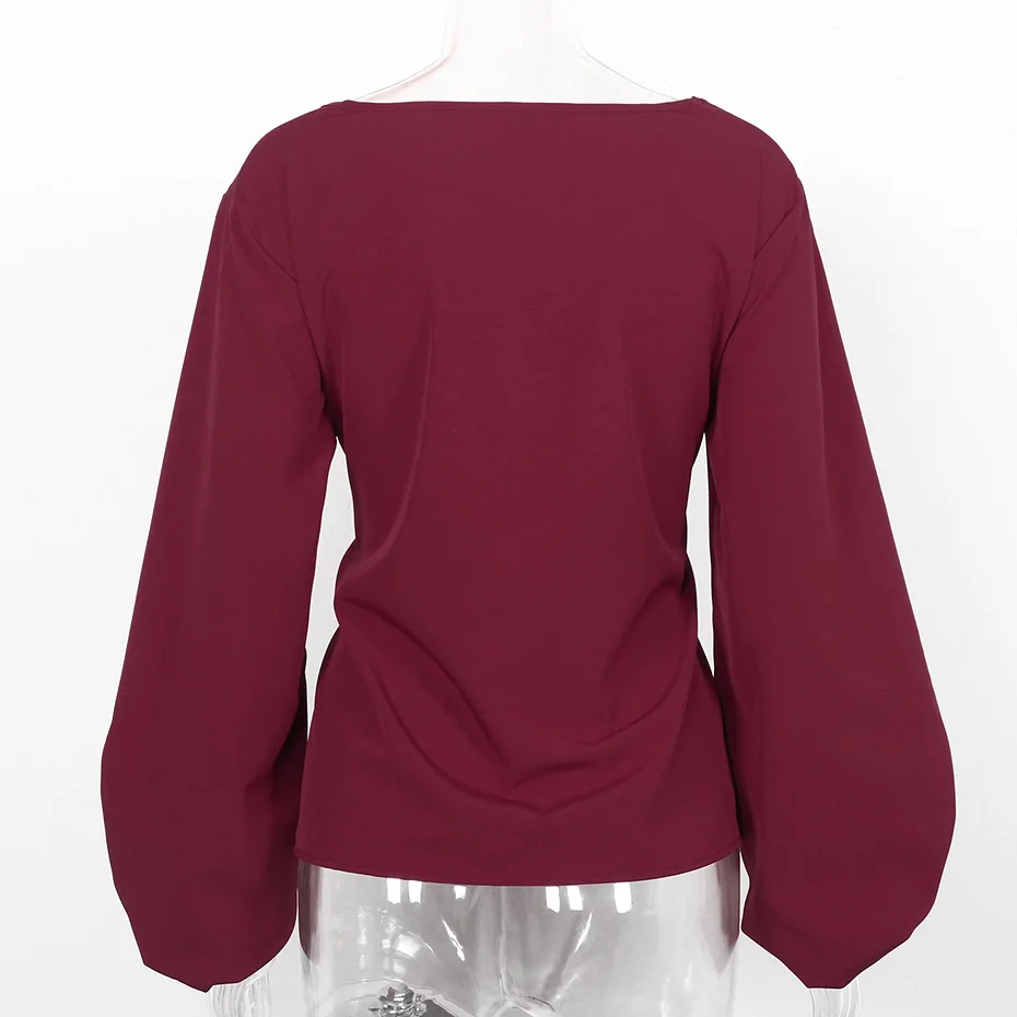Feature :Lantern Sleeve Loose Chiffon Wrap Blouse With Bow Belt