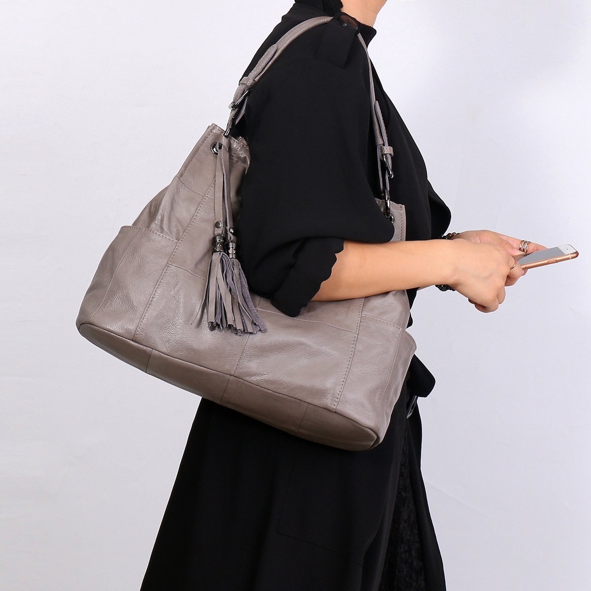 Natural cowhide material, tassels, plaid, retro classical European design handbag a4 ladies handbag ladies popular.