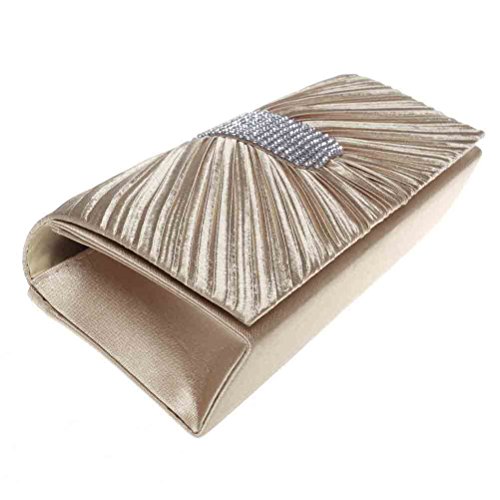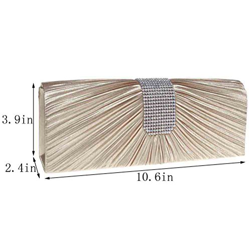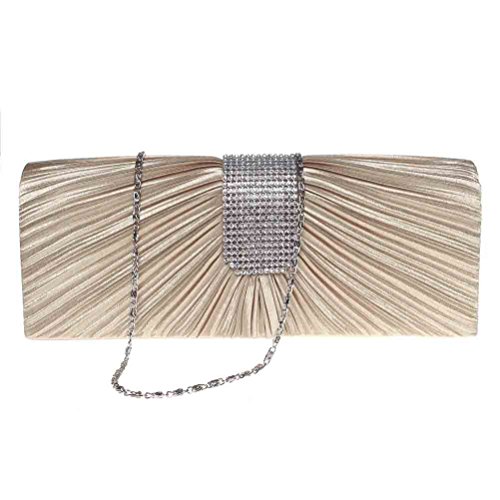 -. Feature : DESIGN - This pleated rhinestone evening clutch makes you noble and elegant. / CAPACITY - It's a super fashionable evening clutch that fit everything you need (cell phone, lipstick, a few bobby pins, ID, debit card, cash). / CARRYING OPTIONS - You can hold this evening clutch in your hand or you can also use it as a shoulder bag with the chains coming with the bag. / OCCASIONS - Great for wedding, party, prom etc. Just get this clutch purse to have a wonderful night. / SERVICE - We love our customer, we will try our best to address all the issue they may meet in time.