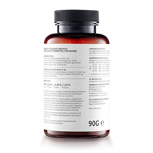 animaux® - in motion 365 brings back your dog's joy of movement with the unique combination of the strengthening green-lipped mussel, the anti-inflammatory devil's claw and the painkiller willow bark.