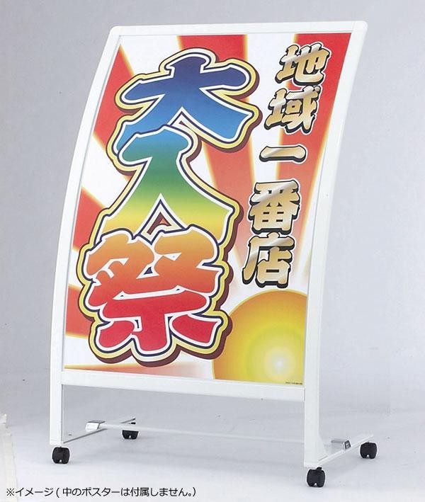 キャスター付で移動もラクラク♪独特の曲面フォルムが特徴のポスター看板です。面板差込式なので、内容を変えたい時、本体はそのままで面板のみを交換することができます。 |