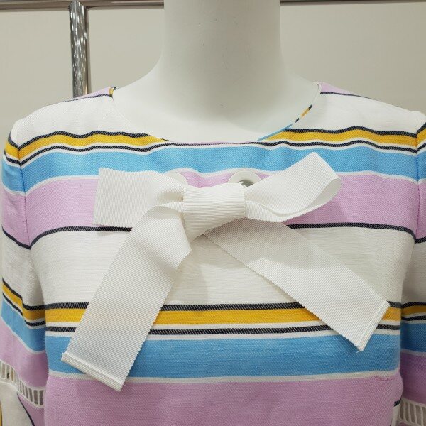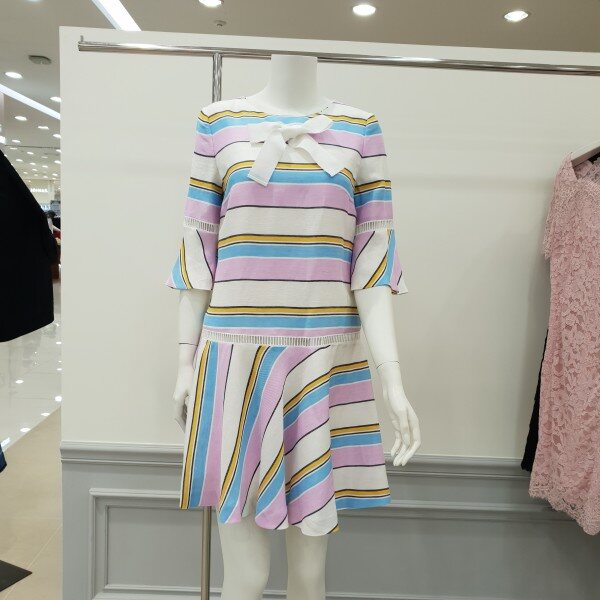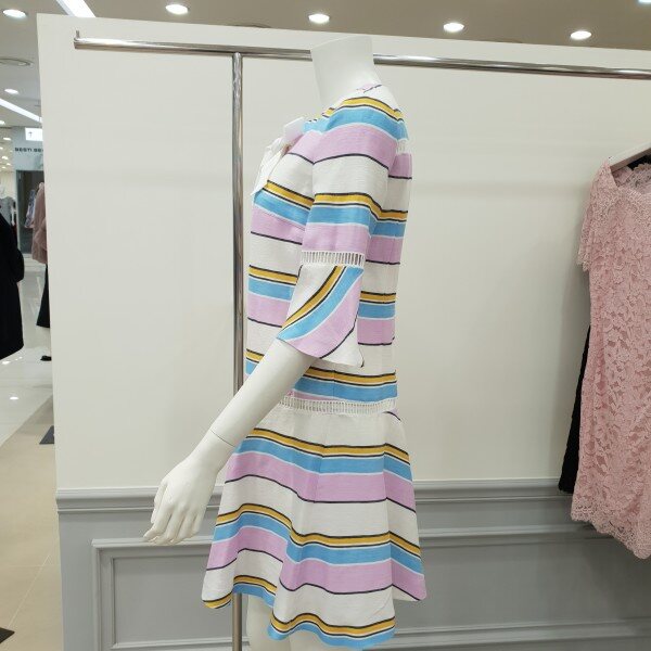 린네소재로 착용시쾌적함과파스텔 색상.리본장식으로여성미 물씬~♡소매기장감짧지않습니다총장88cm