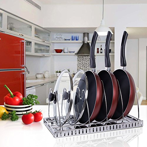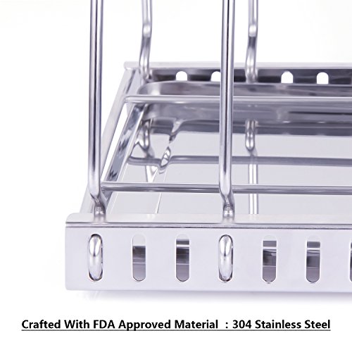 Description: Lifewit Kitchenware Drying Rack is constructed out of stainless steel to guarantee durability, rust resistance, and simple cleaning. Two sizes of frames allow for capacity of different sizes of pans, lids, and cutting boards at once. Six frames to hold multiple items simultaneously. Frames are 1.1cm apart from each other. Removable platform holds drained water for easy drying of kitchenware to prevent the breeding of bacteria. Specification: Material: 304 stainless steel Size: 44.5 x 24x 24cm/17.5' x 9.5' x 9.5' Suitability: for pans, pot lids and cutting board. Assembly required Package detail: 1 x Kitchenware Drying Rack 0 |