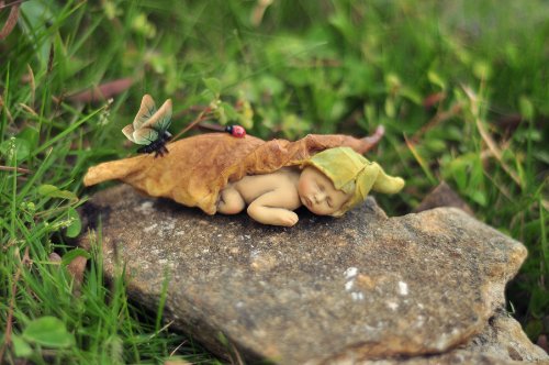 Top Collection Enchanted Story Fairy Garden Sleeping Fairy Baby with Butterfly Outdoor Statue