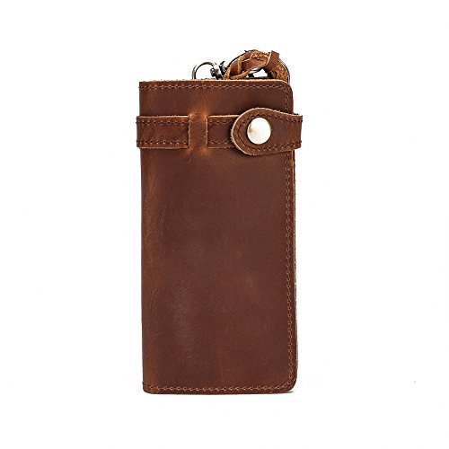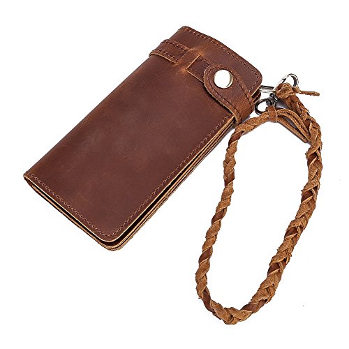 -. Title : Handmade Leather Wallet Vintage Bifold Style Card Holder Checkbook Purse with Braid Chain(HBZ01-C-US)